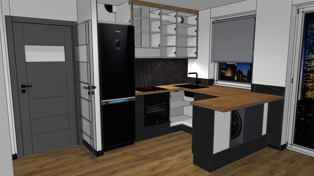 Projekt, który łączy funkcjonalność i estetykę (meble kuchenne i szafa)