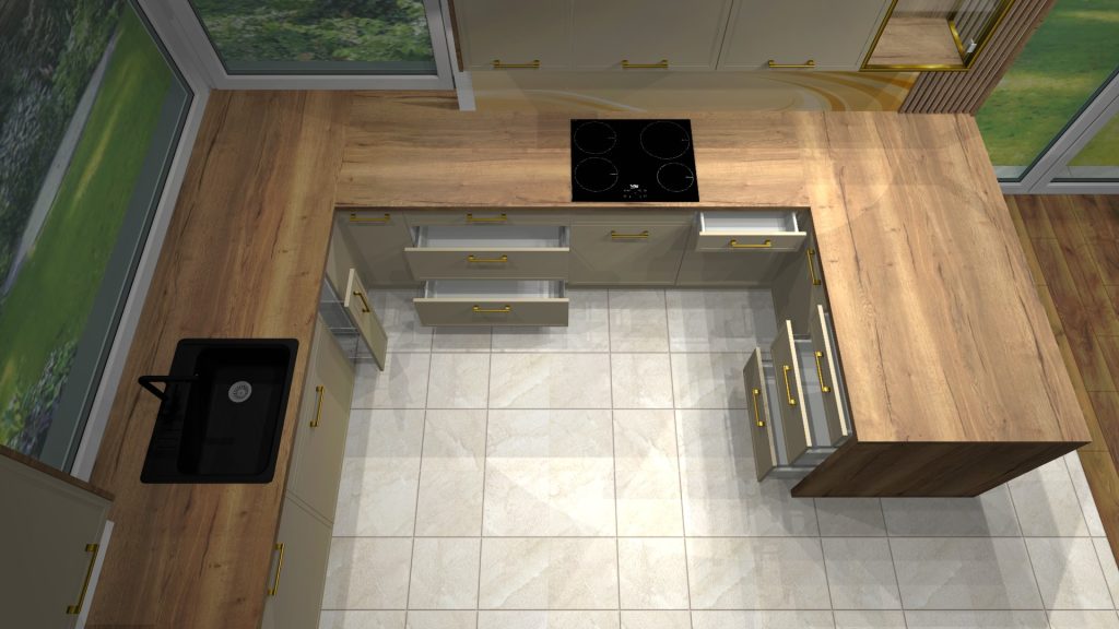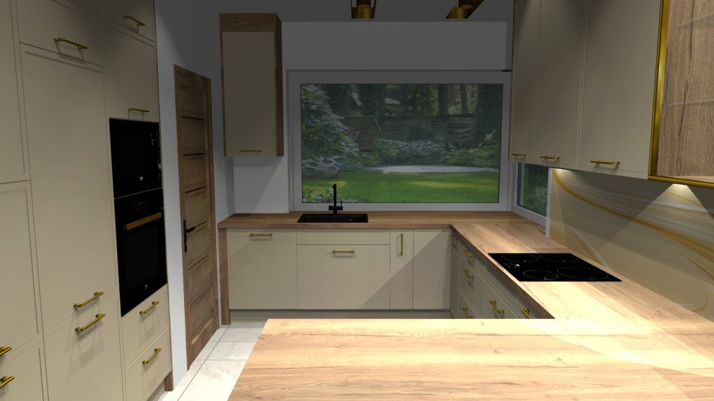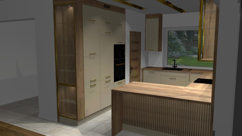 New Modern Style -KUCHNIA w bardzo nowoczesnym wydaniu, ale z nutką klasycyzmu w wykończeniu frontów. Złoty wariant dekoru we wnękach oświetleniowych przenosi się na pozostałe detale kuchni. Tylko w 33DESIGN ambitnie połączysz to co najlepsze w Swojej kuchni.