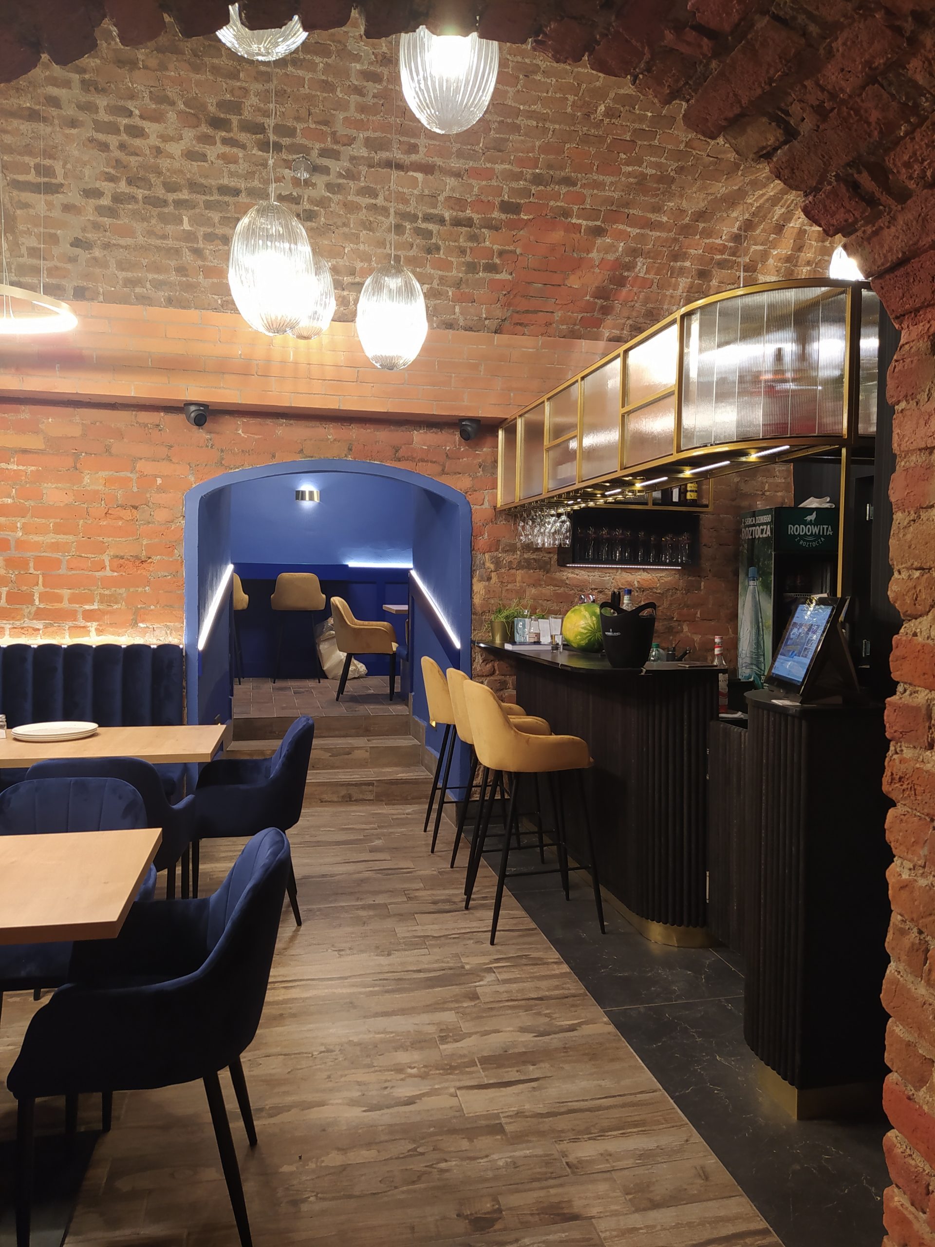 Restauracja zachwyca połączeniem ceglanej architektury z eleganckimi, nowoczesnymi detalami. Nastrojowe światło, aksamitne tapicerki i złote akcenty tworzą wyjątkową atmosferę – idealną zarówno na wieczorne spotkania, jak i codzienne chwile przy dobrym jedzeniu. To przestrzeń, która łączy przytulność z wyrafinowanym charakterem, zapraszając gości do prawdziwego doświadczenia smaku i designu.