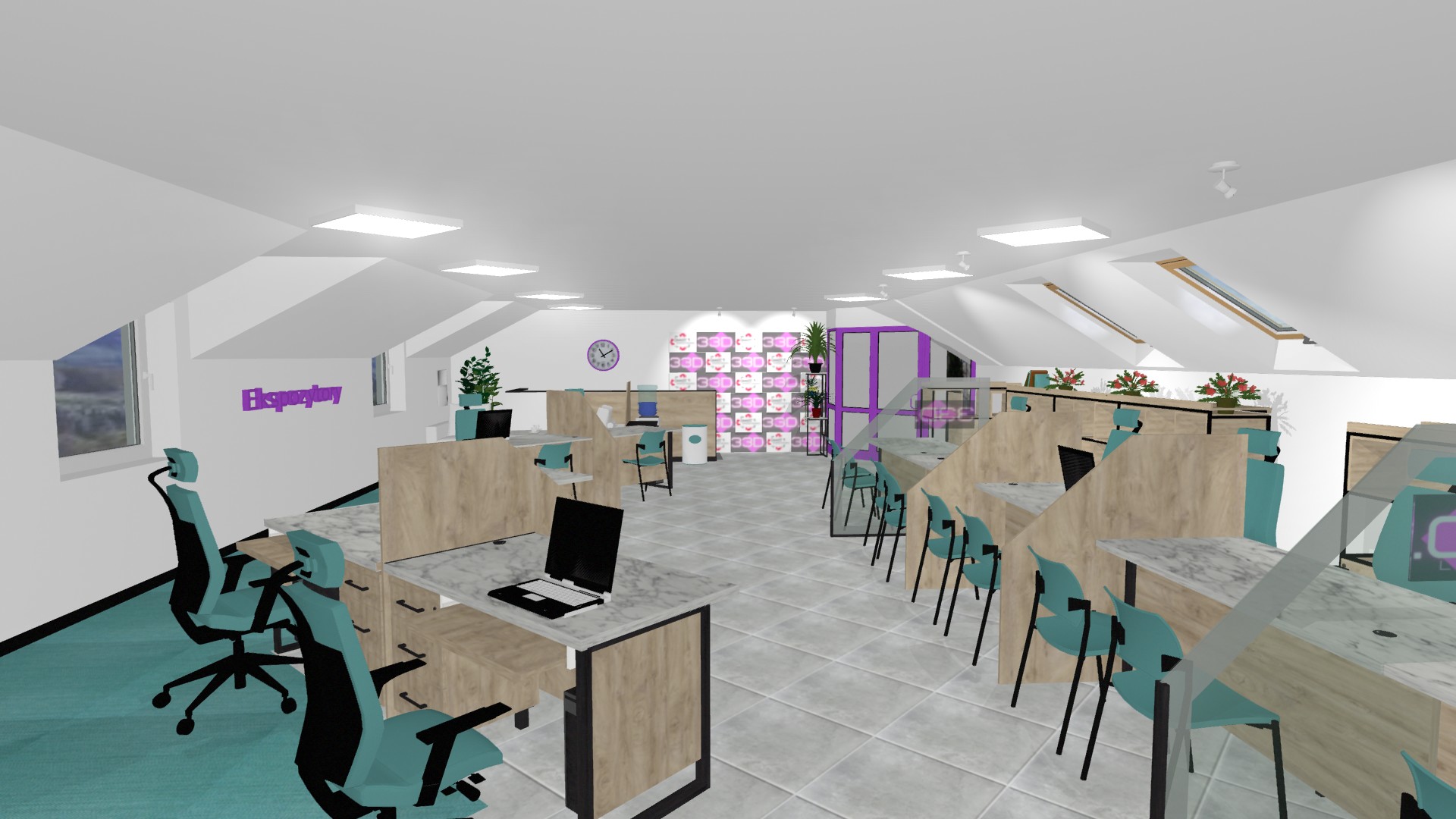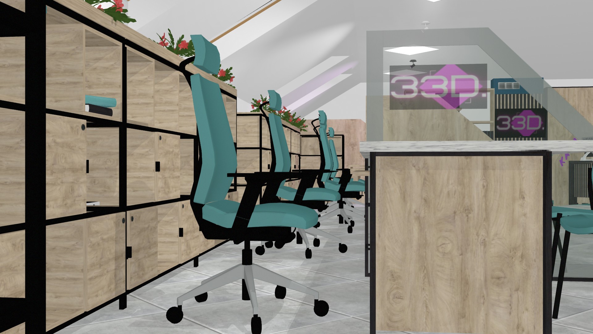 Nowe biuro firmy 33D to połączenie nowoczesnego designu z komfortem codziennej pracy. Zlokalizowane na poddaszu, wykorzystuje naturalne światło z okien dachowych, które nadaje wnętrzu lekkości i energii.